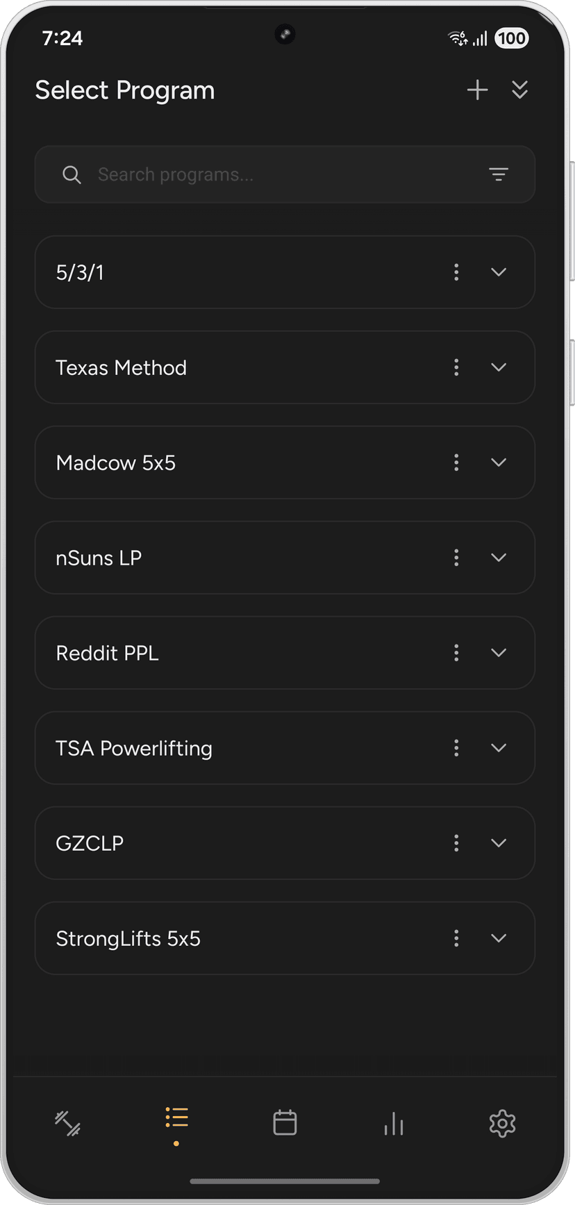 Programas de barra populares basados en hojas de cálculo de la comunidad. Elige uno, configura tu máximo y empieza a levantar.