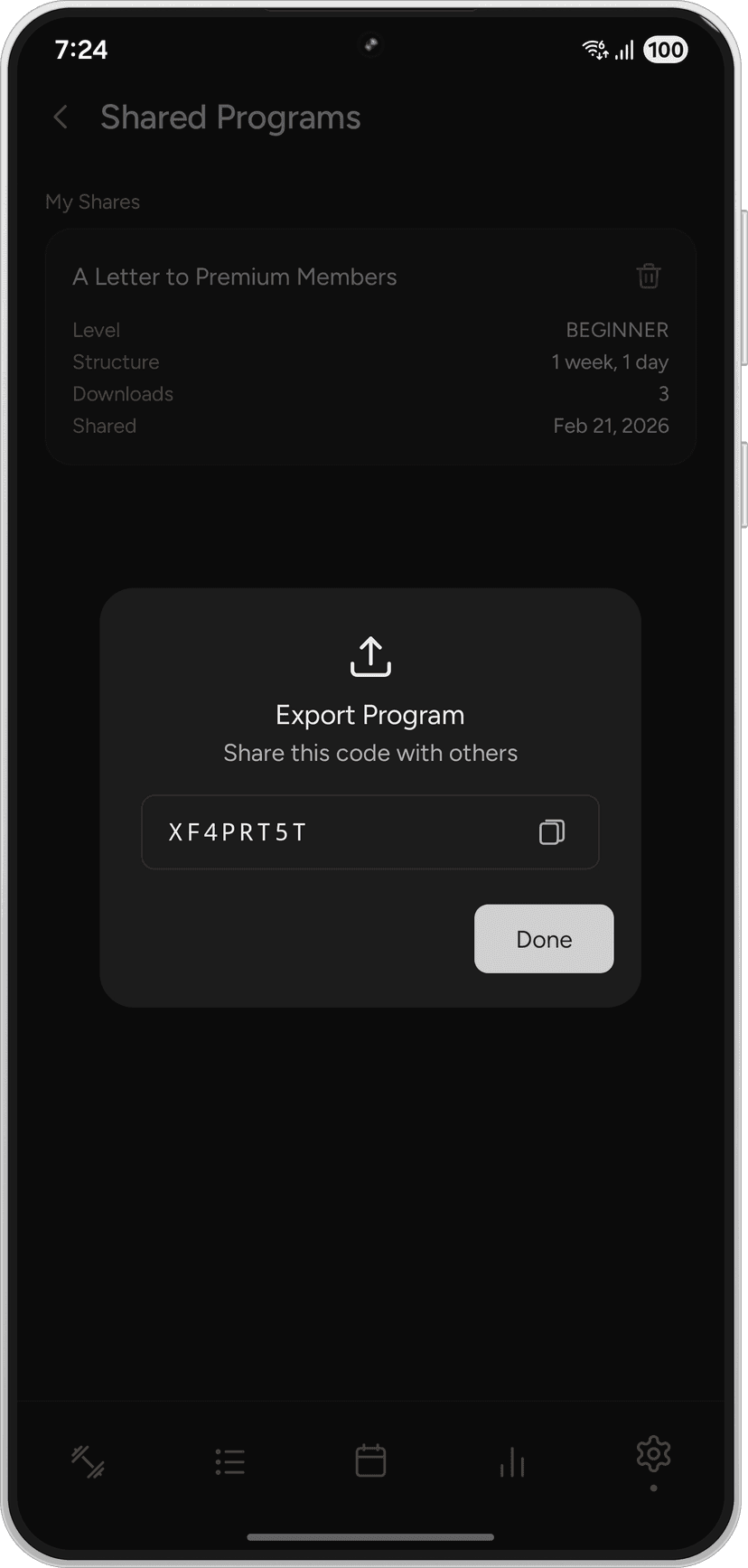 Exporta cualquier programa como un código de 8 caracteres para que otros lo importen. Explora programas de la comunidad e impórtalos en segundos.